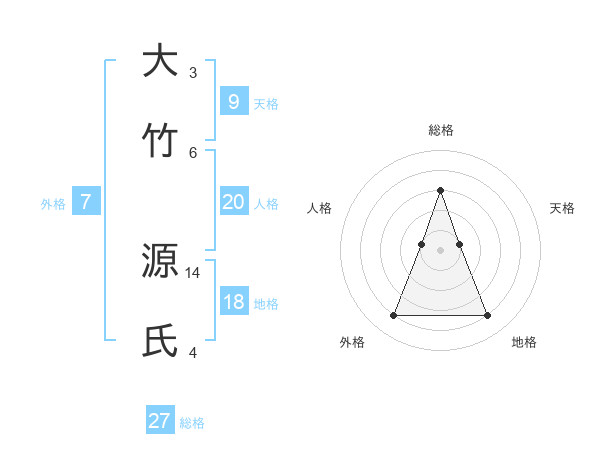 大竹 源氏さんを姓名の画数から五運を鑑定