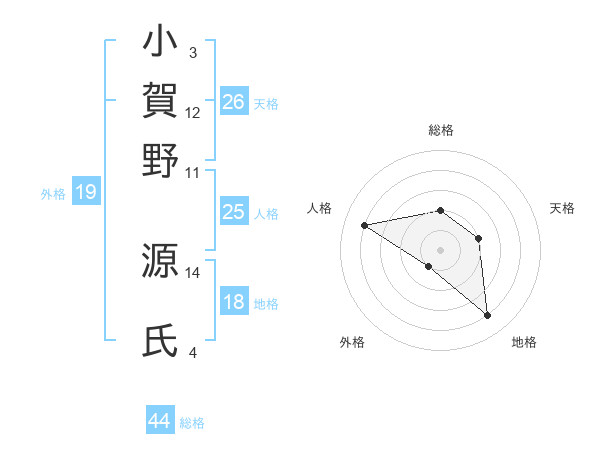 小賀野 源氏さんを姓名の画数から五運を鑑定