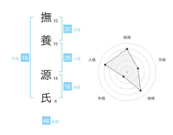 撫養 源氏さんを姓名の画数から五運を鑑定