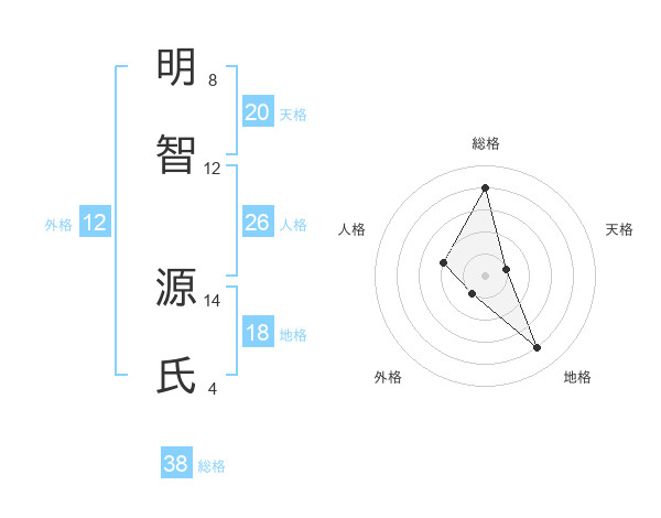明智 源氏さんの総格は38画の4点!