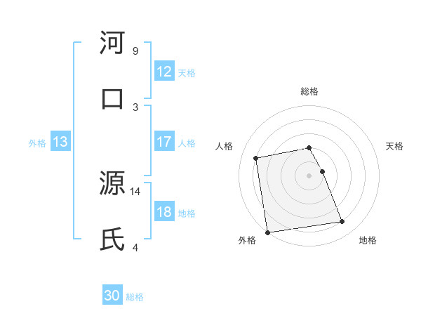 河口 源氏さんの外格は13画の5点!