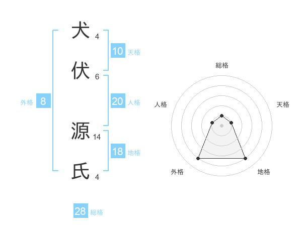 犬伏 源氏さんを姓名の画数から五運を鑑定