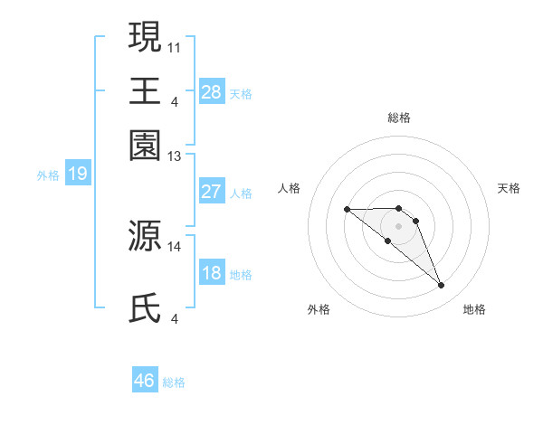 現王園 源氏さんの外格は19画の1点!