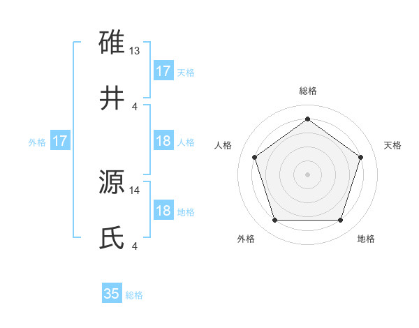 碓井 源氏さんを姓名の画数から五運を鑑定