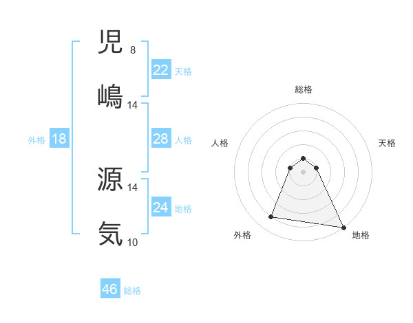 児嶋 源気さんを姓名の画数から五運を鑑定