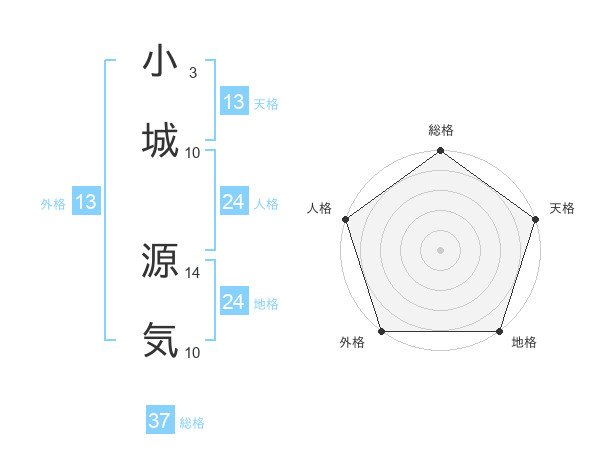 小城 源気さんの総格は37画の5点!