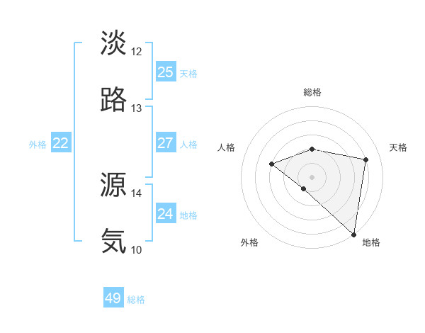 淡路 源気さんの総格は49画の2点!
