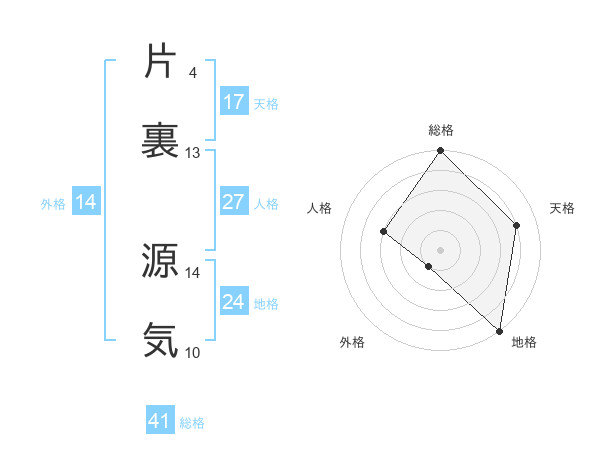 片裏 源気さんの天格は17画の4点!