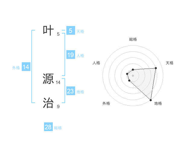 叶 源治さんの地格は23画の5点!