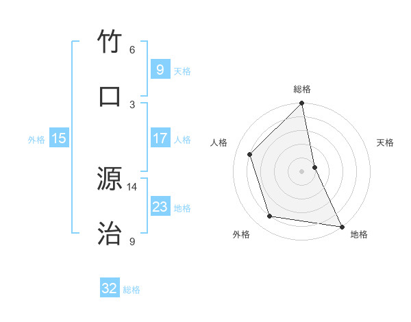 竹口 源治さんの総格は32画の5点!