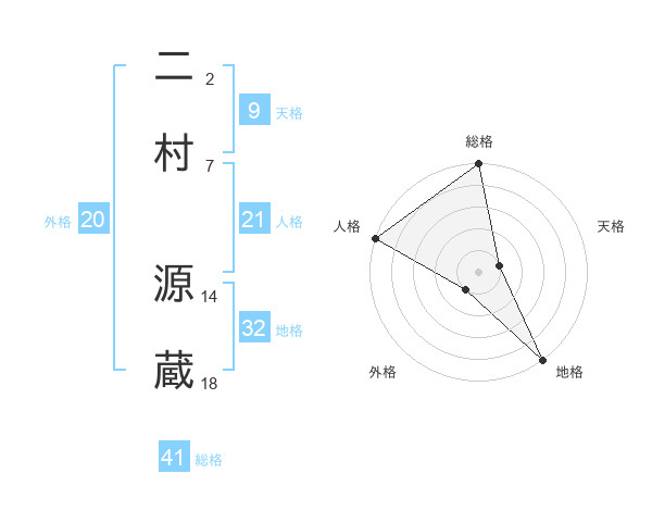 二村 源蔵さんを姓名の画数から五運を鑑定