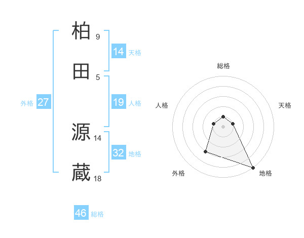 柏田 源蔵さんの天格は14画の1点!