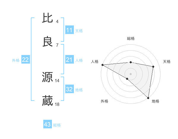 比良 源蔵さんの総格は43画の2点!