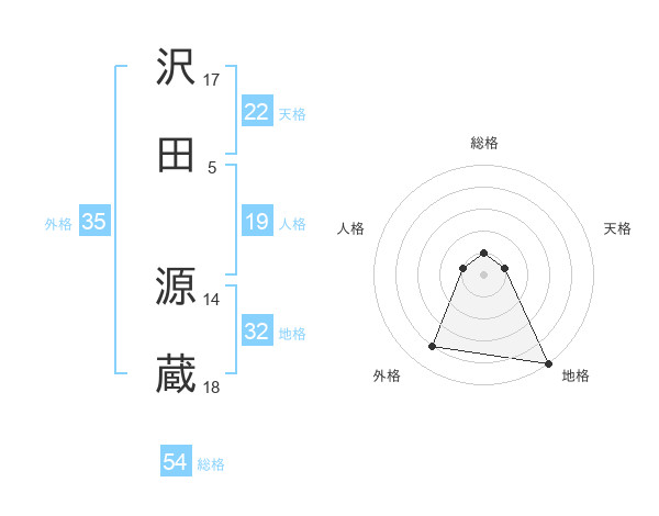 沢田 源蔵さんを姓名の画数から五運を鑑定