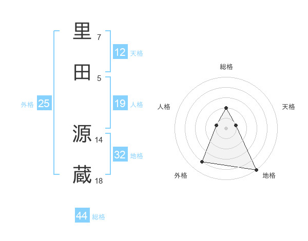 里田 源蔵さんの総格は44画の2点!