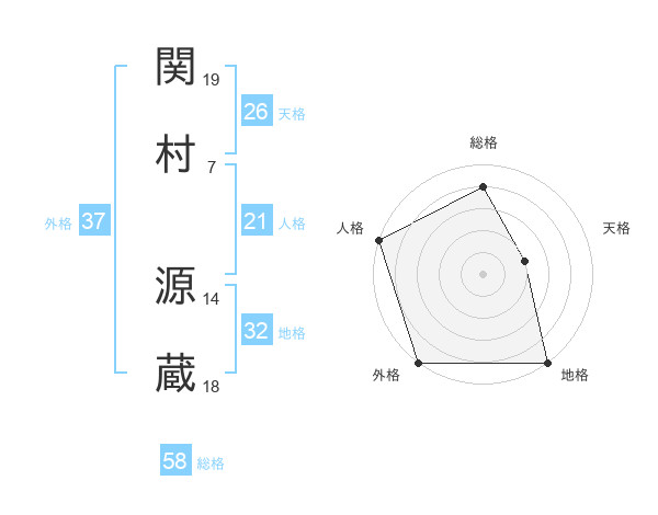 関村 源蔵さんを姓名の画数から五運を鑑定