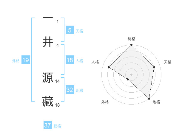 一井 源藏さんの総格は37画の5点!