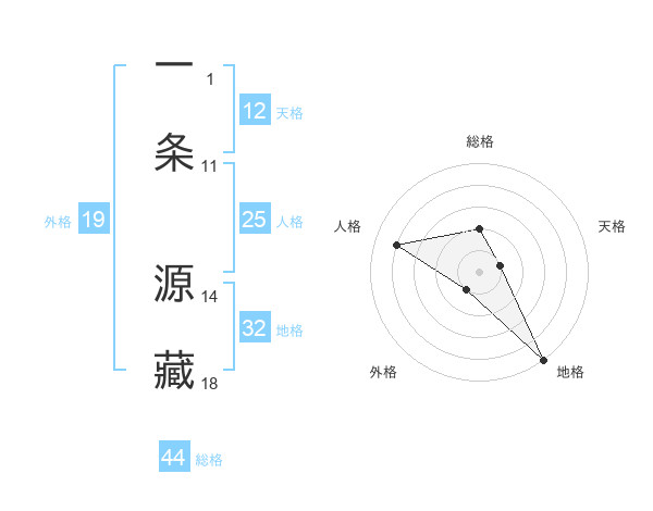 一条 源藏さんの総格は44画の2点!