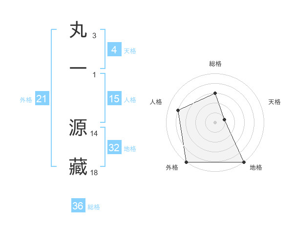 丸一 源藏さんの外格は21画の5点!