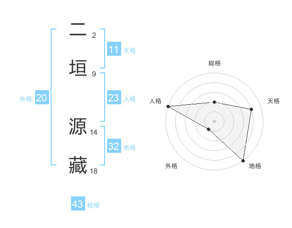 二垣 源藏さんの外格は20画の1点!