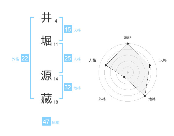 井堀 源藏さんを姓名の画数から五運を鑑定