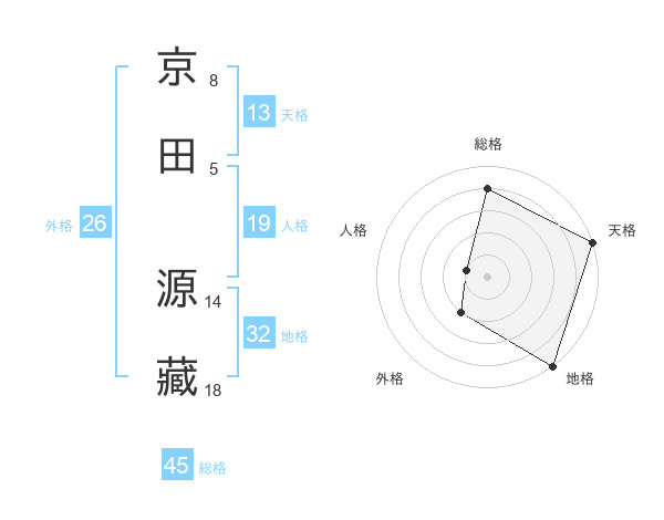 京田 源藏さんの総格は45画の4点!