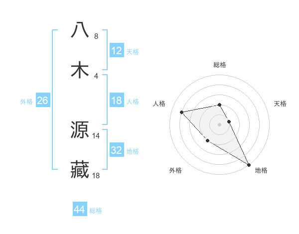 八木 源藏さんの総格は44画の2点