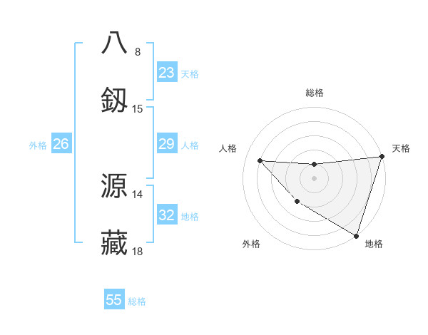 八釼 源藏さんの地格は32画の5点!