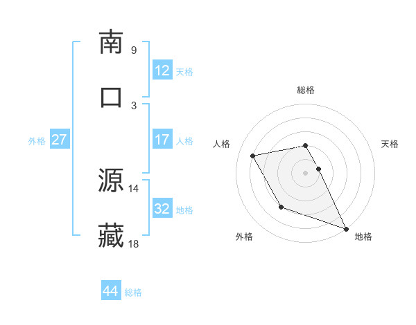 南口 源藏さんの総格は44画の2点!