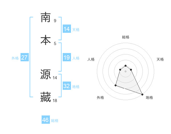 南本 源藏さんの地格は32画の5点!