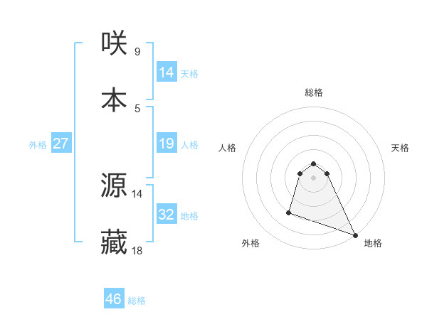 咲本 源藏さんを姓名の画数から五運を鑑定
