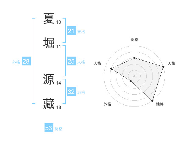 夏堀 源藏さんの天格は21画の5点!
