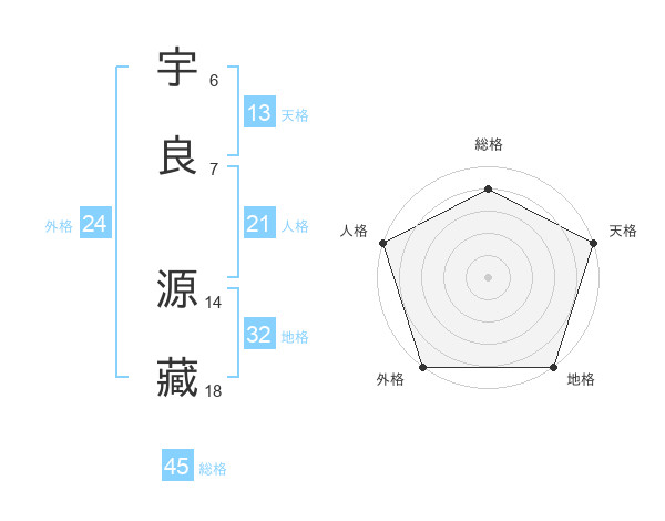 宇良 源藏さんの外格は24画の5点!