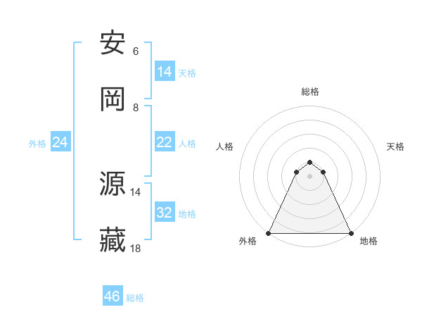 安岡 源藏さんを姓名の画数から五運を鑑定