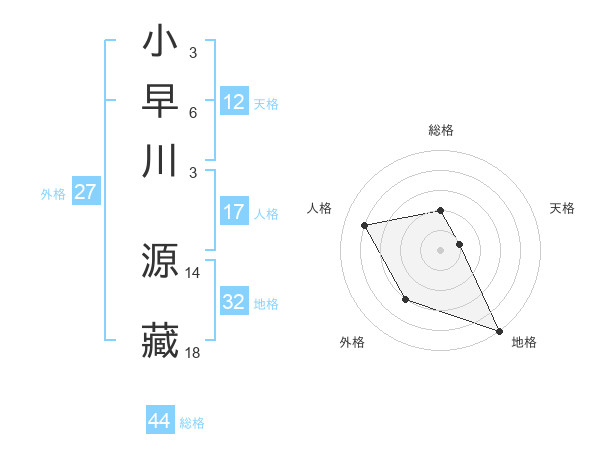 小早川 源藏さんを姓名の画数から五運を鑑定