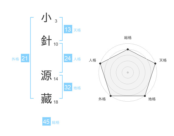 小針 源藏さんの総格は45画の4点!