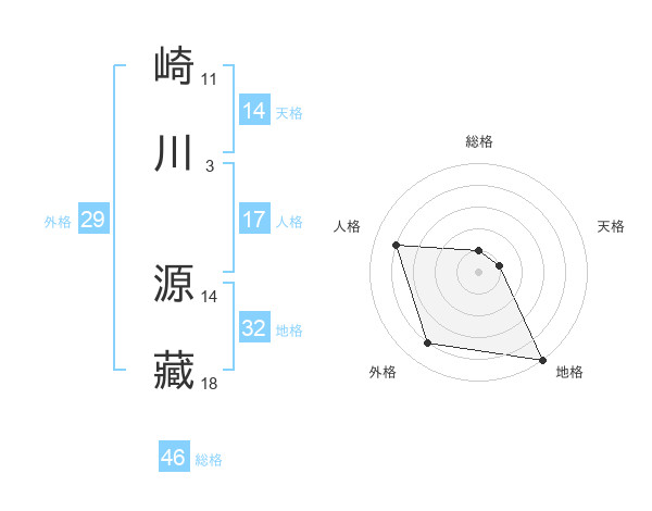 崎川 源藏さんの外格は29画の4点!