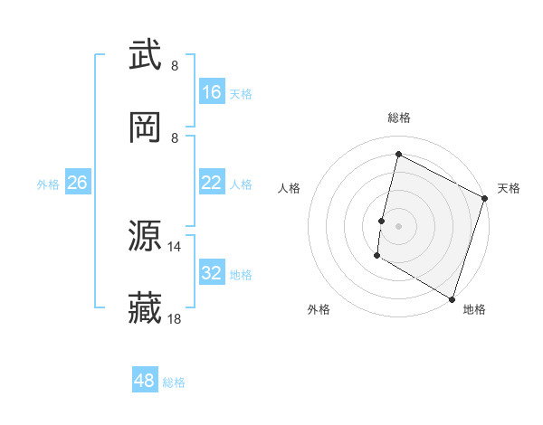 武岡 源藏さんの総格は48画の4点!
