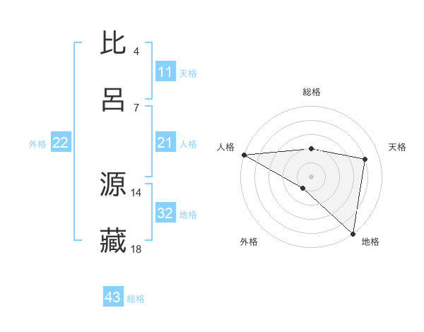 比呂 源藏さんの天格は11画の4点!