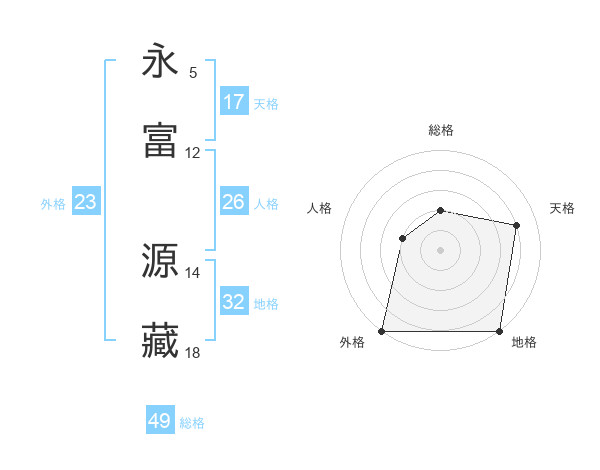 永富 源藏さんの外格は23画の5点!