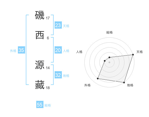 磯西 源藏さんの総格は55画の1点!