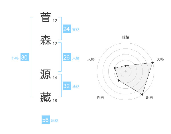 菅森 源藏さんの地格は32画の5点!