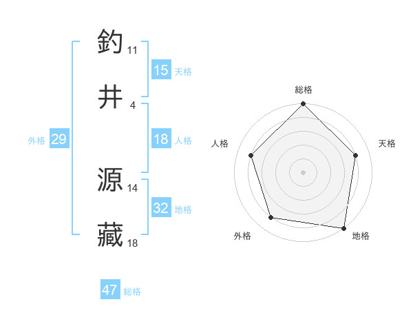 釣井 源藏さんの総格は47画の5点!