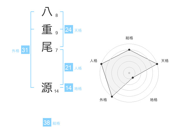 八重尾 源さんの総格は38画の4点!