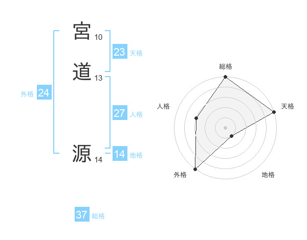 宮道 源さんの天格は23画の5点!