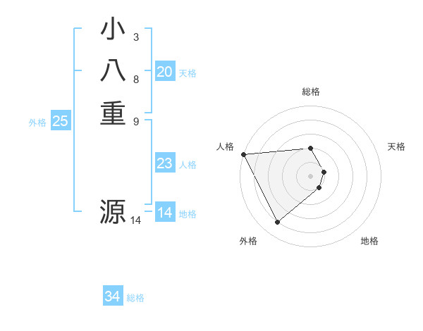 小八重 源さんの天格は20画の1点!