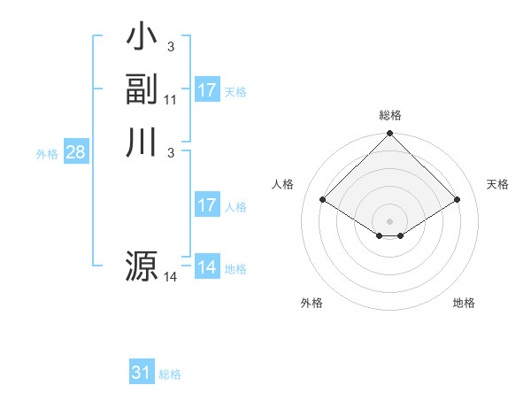 小副川 源さんの天格は17画の4点!