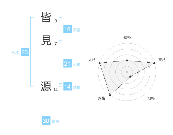 皆見 源さんの総格は30画の2点!