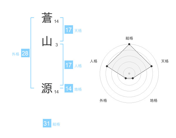 蒼山 源さんの総格は31画の5点!