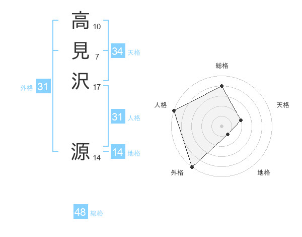 高見沢 源さんの総格は48画の4点!